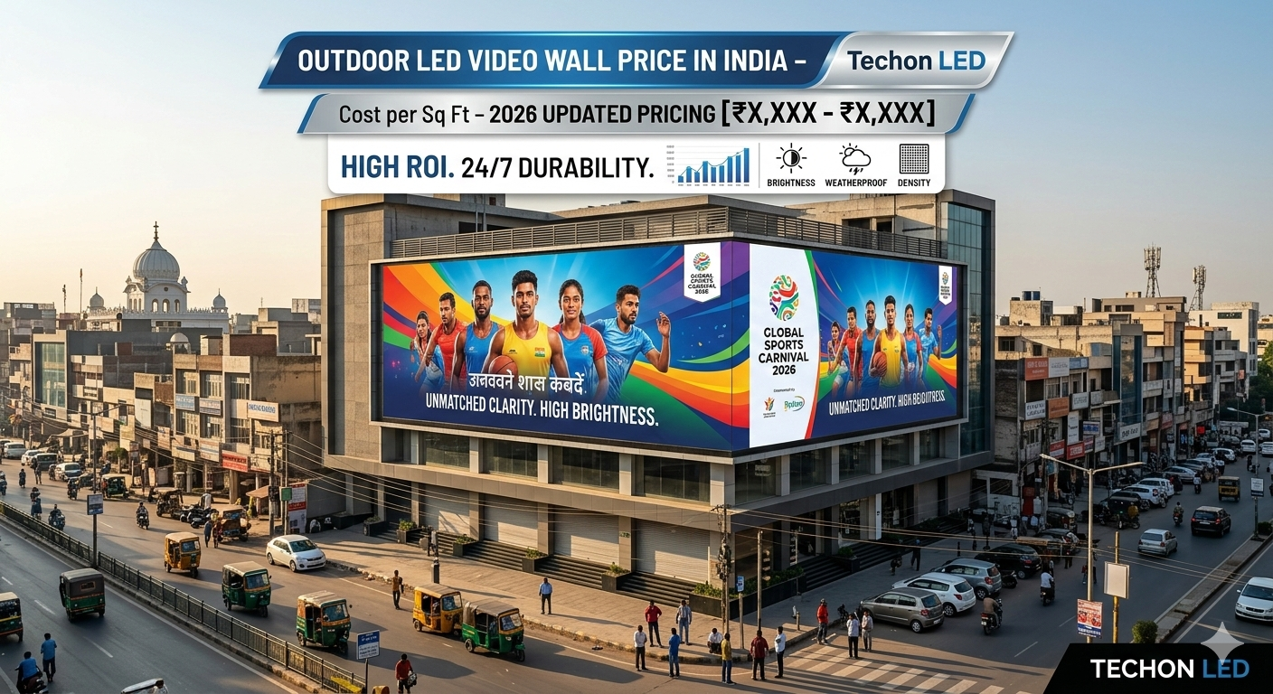 The market for Outdoor LED Video Wall Price in India (2026 Updated Cost per Sq Ft Guide) is really taking off more and more businesses, event organizers and public spaces use these high-impact digital displays to get their message across. If you are thinking of investing in an Outdoor LED Video Wall in India you need to understand the Outdoor LED Video Wall Price in India. This guide will help you figure out how much it will cost you per foot in 2026 and what factors affect the price. Techon LED is a known company that makes high-quality Outdoor LED Video Walls that are durable and work well.