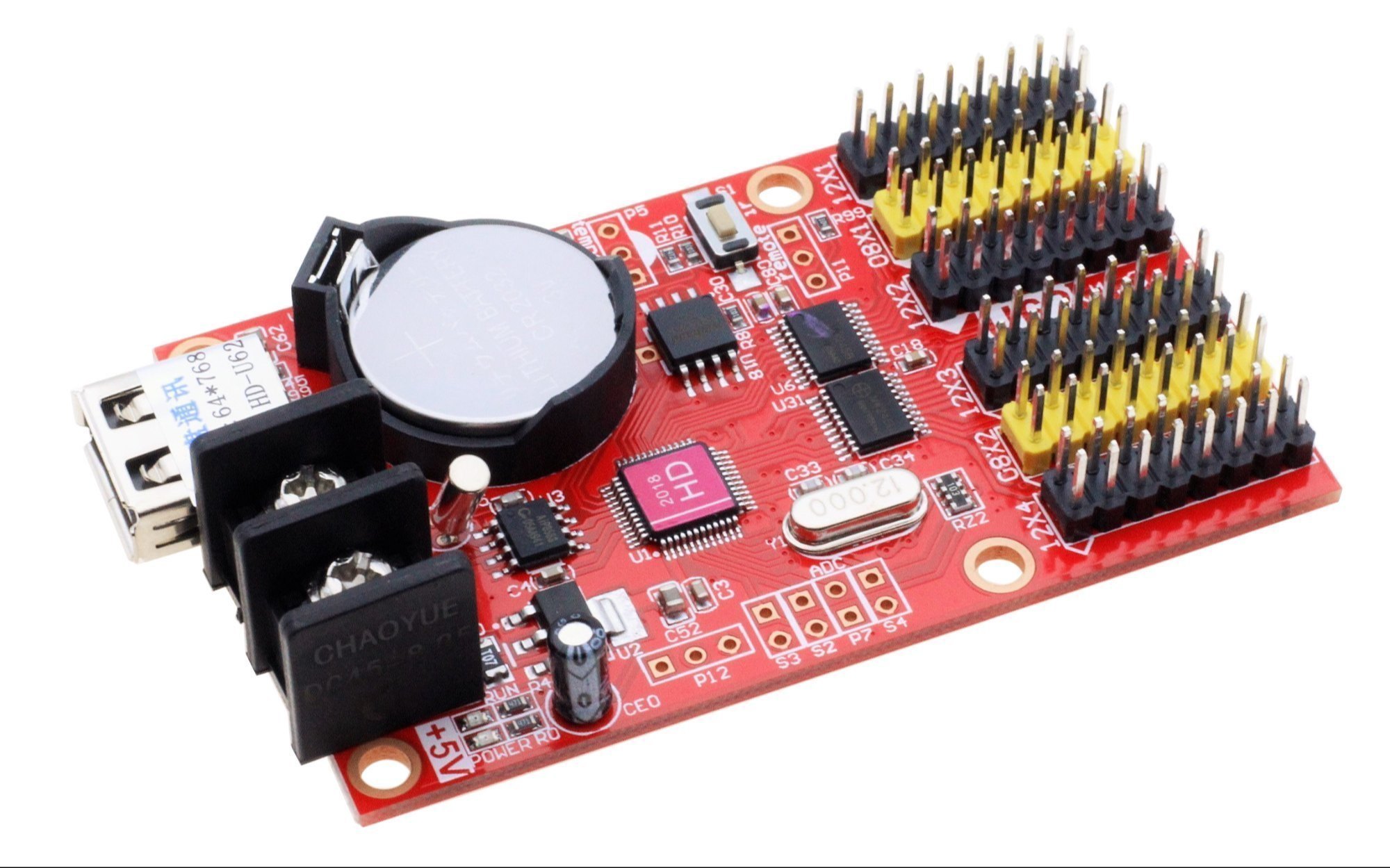 The Huidu HD-W64 is a WiFi control card from Huidu’s W-series designed for single-colour, dual-colour, or tricolor LED displays. It supports program updates either over WiFi or via USB (U-disk). It offers a wide control range and flexible pixel configuration. Other features include support for temperature, humidity, brightness monitoring, regional border settings, and a simple software interface for easy operation. Ideal for LED signboards, storefront screens, and LED strips where wireless data updating and remote control are useful.