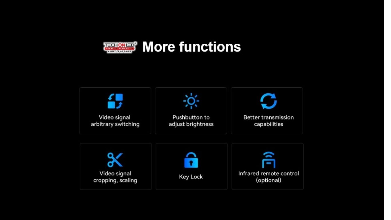 The Huidu KV410 Controller by Techon LED is a high-performance LED control solution designed for video walls, stage displays & advertising screens. It provides stable, high-speed signal transmission & precise control for both indoor & outdoor LED setups. With versatile connectivity & user-friendly operation, the KV410 ensures smooth, synchronized visuals & efficient display management. Durable & reliable, it’s ideal for events, commercial installations & professional LED display applications.